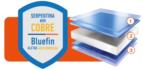 Facilita o escoamento de gotículas de água em contato com a superfície das aletas. Melhor eficiência e aumento de até 10% na troca de calor.