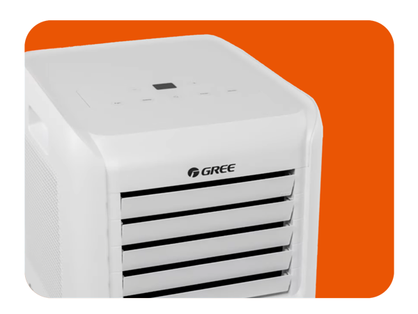 Ar-condicionado portátil Gree Aovia R32: compacto, eficiente, ecológico, resfria rápido. Ideal para ambientes pequenos e modernos.